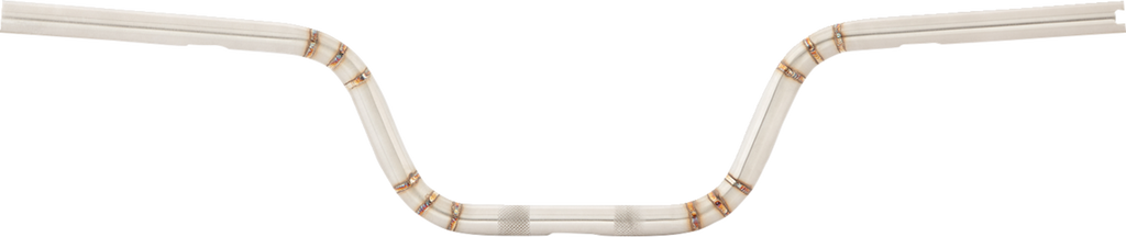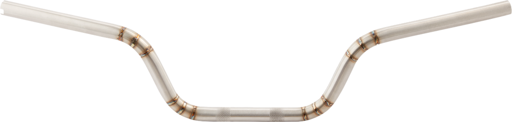 Handcrafted moto handlebars made from stainless steel tubing that is bent, cut and welded into an aggressive styled bar with a comfortable riding position, Hand finished for a unique look , Moto style handlebar provides an aggressive yet comfortable riding position , Made from 1" premium stainless steel tubing, 1" diameter knurled clamping area , Will work with both cable and throttle by wire throttle.