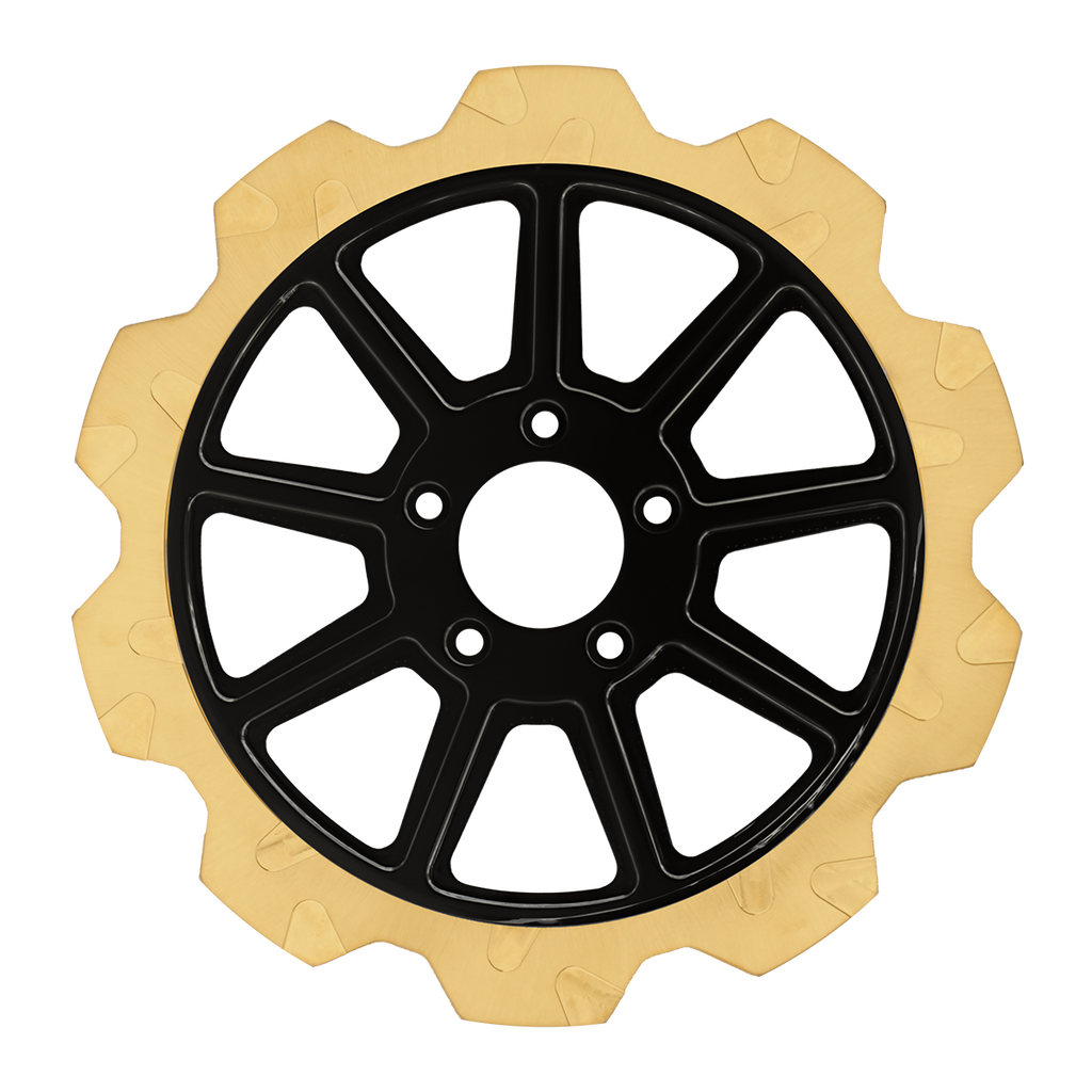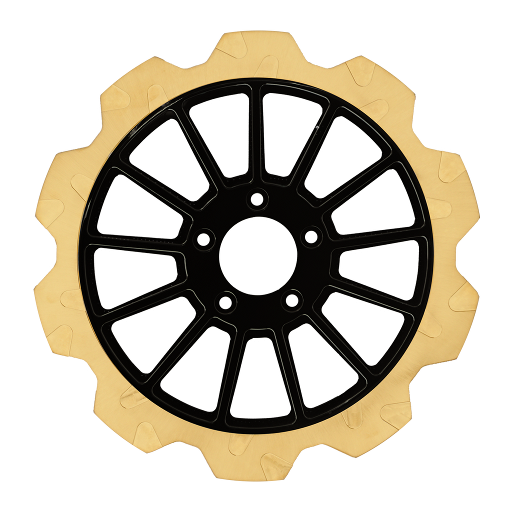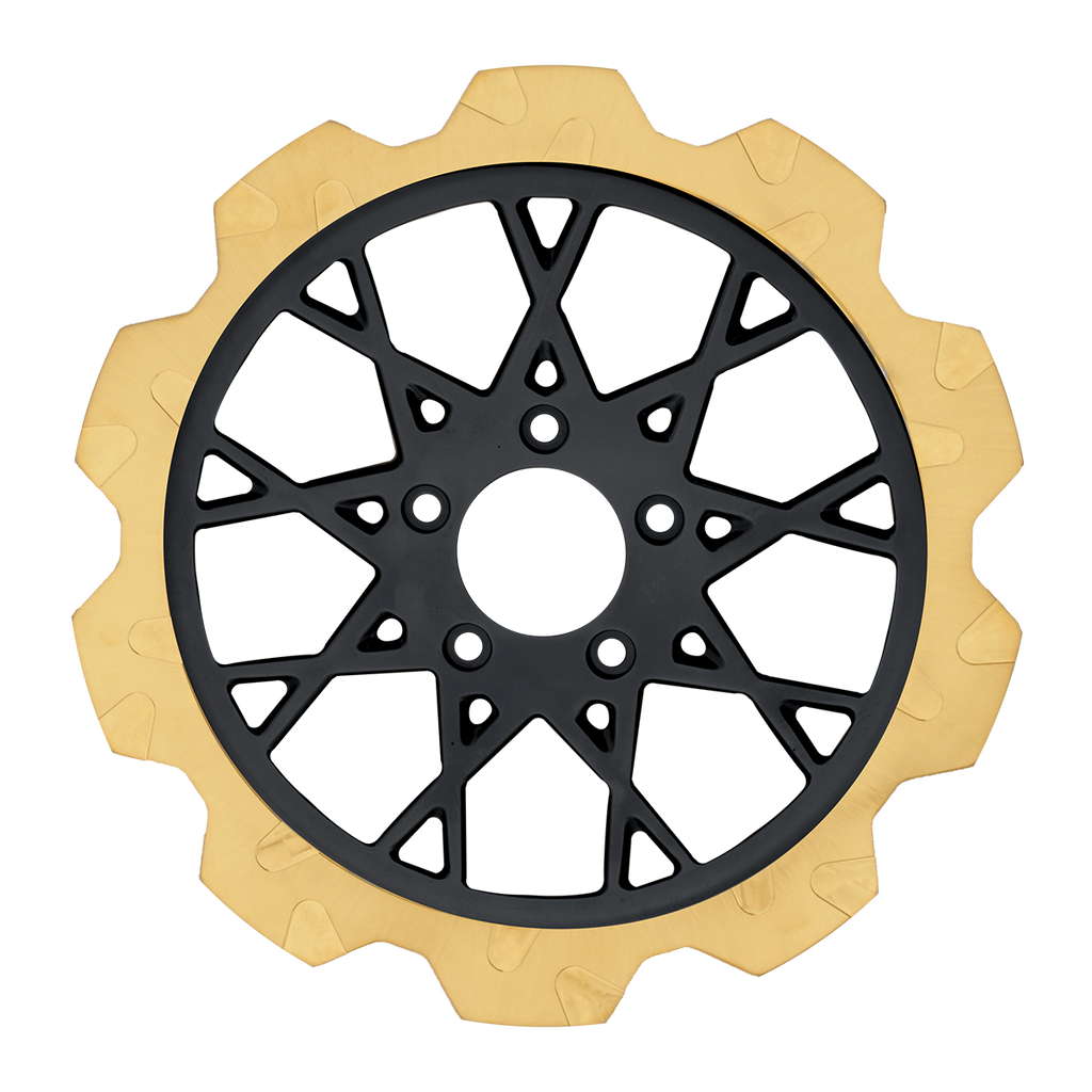 For riders who prioritize both performance and aesthetics, our Gold+ brake compound is the ideal choice. Designed to prioritize braking effectiveness, this compound removes the finish from areas that engage the brake pads, while still delivering exceptional friction rating. This pad leaves a nice contrast look of machine finish and the original gold or black color in the gas slots of the rotor.