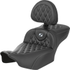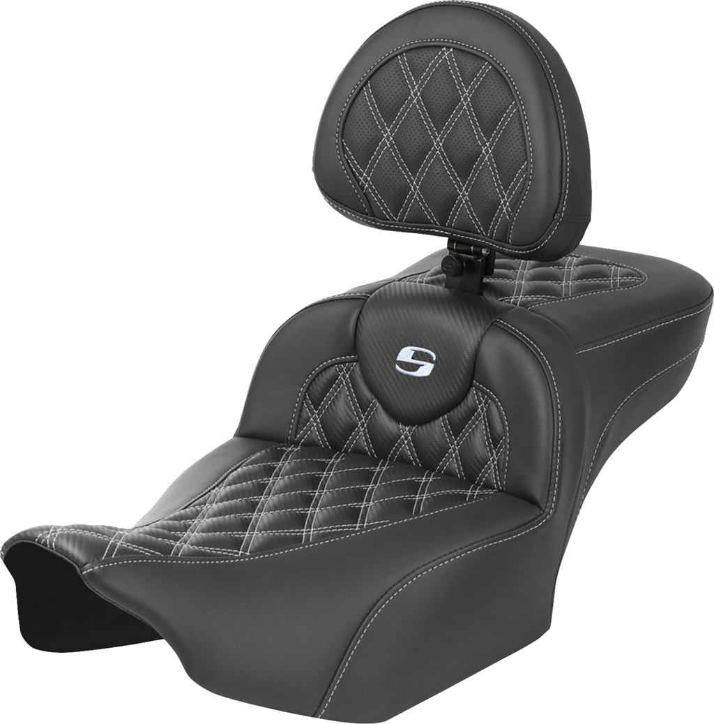 SADDLEMEN Roadsofa* Extended Reach Seat - with Backrest - Lattice Stitch - Silver Stitch - FLTR/FLHX '23-'24 823-07-207B5