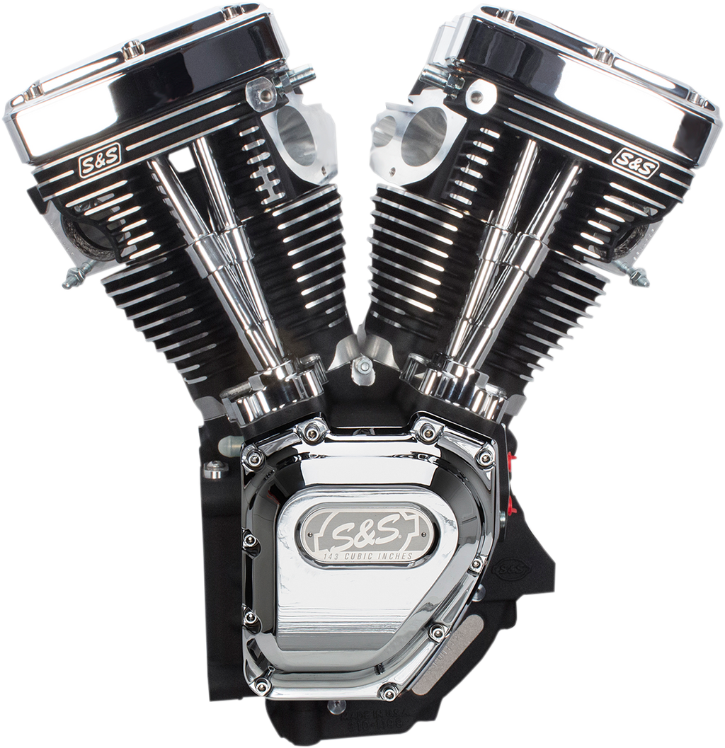 S&S Cycle T143 Long Block Engine - Wrinkle Black and Chrome for Touring and Dyna Models | Part 310-0737A