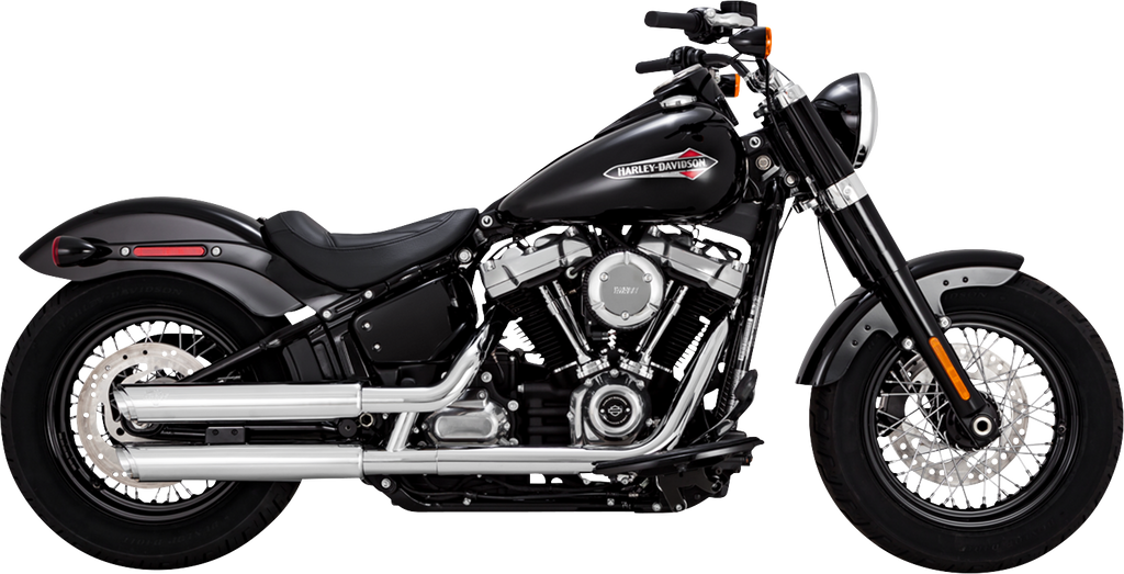 The Vance & Hines 3-Inch Twin Slash Slip-On Muffler, part number 16376, offers an optimal blend of performance and style for your motorcycle. Engineered with PCX™ (Power Chamber Exhaust) technology, this muffler features a chambered high-flow catalyst cartridge designed to enhance torque and optimize exhaust flow. The chrome finish adds a sleek, polished look that complements a variety of bike styles. This slip-on muffler is built with full coverage heat shields to protect against heat and ensure safety during operation. Designed to be 49-state emissions compliant, it meets all necessary regulations while delivering improved sound and performance. The package includes detailed mounting and hardware instructions, making installation straightforward. Sold in pairs, these mufflers provide symmetry and balanced exhaust performance for your motorcycle. Made in the USA, the Vance & Hines Twin Slash Slip-On Muffler is a reliable choice for riders seeking both durability and enhanced riding experience.