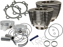 - Complete kits include cylinders, forged pistons, rings, piston pins, clips and gaskets