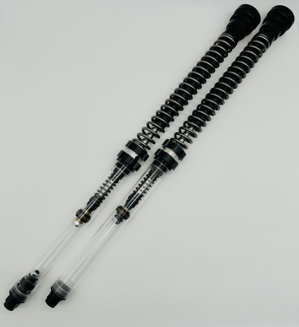 Our 25mm cartridge kit for Harley-Davidson baggers, features the same innovative design we developed on the racetrack. This advanced hydraulic system is engineered to absorb every bump in the road, providing riders with exceptional confidence and traction. Drawing from our extensive racing background, we've crafted a suspension that is not overly stiff like a typical race system but is instead finely tuned for optimal performance on the road. Our deep understanding of suspension dynamics allows us to deliver a system that ensures a smooth, controlled ride, enhancing comfort without compromising on responsiveness or stability. Experience the perfect blend of race-proven technology and road-ready comfort with our cutting-edge cartridge kit.