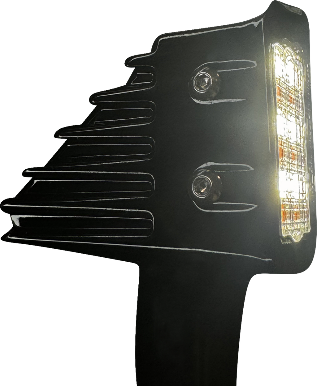 Direct replacement for Low Rider ST OEM front turn signals, Aggressively styled LED front turn signals offer the brightest white running light with full contrast amber turn signal, Faceted smoked lens is inset into a gloss black or dark bronze metal housing with stainless fasteners, Bright white Daytime Running Light (DRL), Compact size, Equipped with Plug-and-Play connectors for easy installation