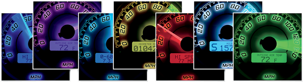 • Independent programming of pointer, backlight, and LCD message center colors for customization