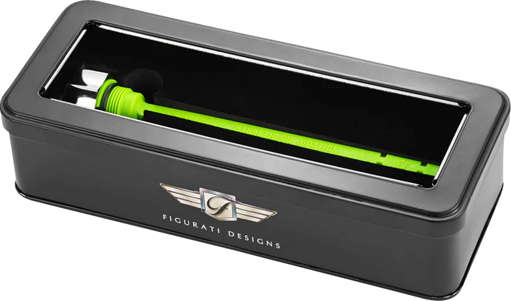 FIGURATI DESIGNS Performance Magnetic Oil Dipstick - Curved - Silver - Indian FD01-MAGDSTS-SM-SS