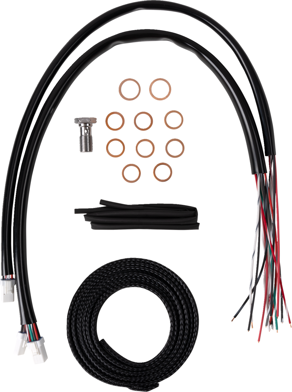 Take "cable calculation" headaches out of swapping handlebars, Kit includes the correct length cables, brake lines and wire extensions you need so you can complete a handlebar swap, Stainless braided kit includes throttle cable, idle cable (unless noted), clutch cable, brake lines, chrome "T" brake line junction, banjo bolts, fittings and copper crush washers, Made in the U.S.A., Kit is based on using 2" risers with Ape Hanger handlebars.
