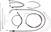 The only complete kit with matching braided cables and brake lines, Kit includes throttle and idle cables of throttle-by-wire extensions, clutch cable or hydraulic clutch line, brake lines, copper crush washers, hardware, and any necessary switch wiring of turn signal extension, All cables are a low-effort, high-efficiency design that meets or exceeds all OE specifications for fitment, construction, endurance, Kit for dual disc models includes an all brazed manifold that eliminates leaks, alignment problems and unattractive threaded connections, Assembled in the U.S.A., Kit is based on using ape hanger style handlebars with 2* risers.