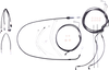 The only complete kit with matching braided cables and brake lines, Kit includes throttle and idle cables of throttle-by-wire extensions, clutch cable or hydraulic clutch line, brake lines, copper crush washers, hardware, and any necessary switch wiring of turn signal extension, All cables are a low-effort, high-efficiency design that meets or exceeds all OE specifications for fitment, construction, endurance, Kit for dual disc models includes an all brazed manifold that eliminates leaks, alignment problems and unattractive threaded connections, Assembled in the U.S.A., Kit is based on using ape hanger style handlebars with 2* risers.