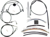 The only complete kit with matching braided cables and brake lines, Kit includes throttle and idle cables of throttle-by-wire extensions, clutch cable or hydraulic clutch line, brake lines, copper crush washers, hardware, and any necessary switch wiring of turn signal extension, All cables are a low-effort, high-efficiency design that meets or exceeds all OE specifications for fitment, construction, endurance, Kit for dual disc models includes an all brazed manifold that eliminates leaks, alignment problems and unattractive threaded connections, Assembled in the U.S.A., Kit is based on using ape hanger style handlebars with 2* risers.