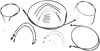 The only complete kit with matching braided cables and brake lines, Kit includes throttle and idle cables of throttle-by-wire extensions, clutch cable or hydraulic clutch line, brake lines, copper crush washers, hardware, and any necessary switch wiring of turn signal extension, All cables are a low-effort, high-efficiency design that meets or exceeds all OE specifications for fitment, construction, endurance, Kit for dual disc models includes an all brazed manifold that eliminates leaks, alignment problems and unattractive threaded connections, Assembled in the U.S.A., Kit is based on using ape hanger style handlebars with 2* risers.