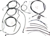 The only complete kit with matching braided cables and brake lines, Kit includes throttle and idle cables of throttle-by-wire extensions, clutch cable or hydraulic clutch line, brake lines, copper crush washers, hardware, and any necessary switch wiring of turn signal extension, All cables are a low-effort, high-efficiency design that meets or exceeds all OE specifications for fitment, construction, endurance, Kit for dual disc models includes an all brazed manifold that eliminates leaks, alignment problems and unattractive threaded connections, Assembled in the U.S.A., Kit is based on using ape hanger style handlebars with 2* risers.
