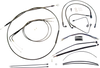 The only complete kit with matching braided cables and brake lines, Kit includes throttle and idle cables of throttle-by-wire extensions, clutch cable or hydraulic clutch line, brake lines, copper crush washers, hardware, and any necessary switch wiring of turn signal extension, unless otherwise noted, All cable and brake lines feature Black Pearl braid with highly polished black chrome plated fittings, All cables are a low-effort, high-efficiency design that meets or exceeds all OE specifications for fitment, construction, endurance, Kit for dual disc models includes an all brazed manifold that eliminates leaks, alignment problems and unattractive threaded connections, Assembled in the U.S.A., Kit is based on using ape hanger style handlebars with 2* risers.