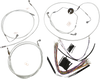 Complete kit comes with matching braided cables and brake lines, Kit includes throttle and idle cables of throttle-by-wire extensions, clutch cable or hydraulic clutch line, brake lines, copper crush washers, hardware, and any necessary switch wiring of turn signal extension, All cable and brake lines feature Sterling Chromite II braid with highly polished chrome plated fittings, All cables are a low-effort, high-efficiency design that meets or exceeds all OE specifications for fitment, construction and endurance, Kits for dual disc models includes an all brazed manifold that eliminates leaks, alignment problems and unattractive threaded connections, Assembled in the U.S.A., Kit is based on using ape hanger style handlebars with 2* risers.