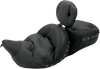 Super comfortable touring design provides rider and passenger with the fullest, most comfortable seat possible, Includes receiver for optional driver backrest (backrest must be purchased separately), Seat is 1-3/4" (4.45 cm) further back than stock, Expanded vinyl cover, Made in the USA, Will fit with a handrail.