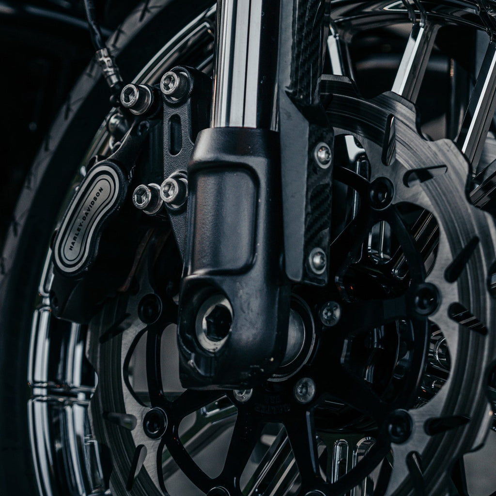 * For the Sportster Roadster mag conversion (pictured), OEM caliper(s) bracket(s) has to be slightly modified to work .