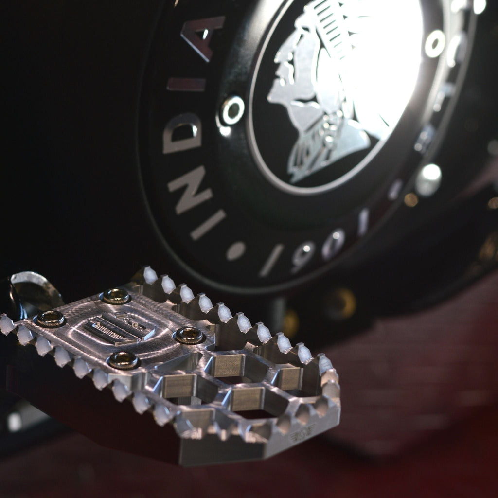 These modular pegs offer a replaceable top platform so you can have multiple gripper styles to match your need. For the aggressive rider out there, you'll be able to replace your gripper for cheap without having to buy an other full set of pegs. The new optimized HoneyComp V3 design will provide the extra grip needed. Now available for new Indian models!