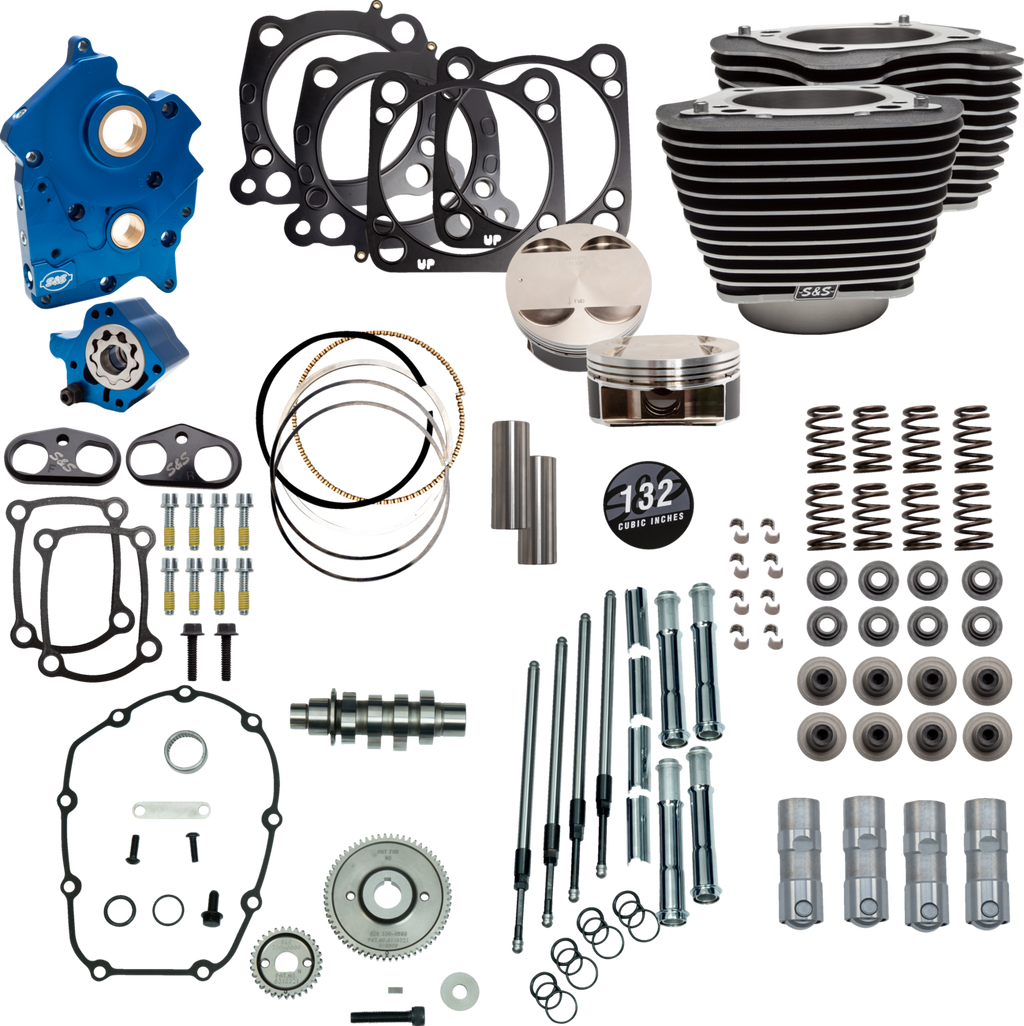 S&S Cycle 132-Inch Power Package Engine Performance Kit for M8 Engines - Gear Drive, Oil Cooled, Highlighted Fins, Part Number 310-1232