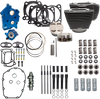 Bolt-on kit, With updated fins, No case machining required, Forged pistons, Made in the USA, Includes oil pump/cam plate, pushrods, tappets, tappet cuffs, 550 camshaft, valve springs, Oil Pump/Cam Plate:, Precision machined from billet aluminum, Passage plugs removable for servicing, Independent scavenge sections for flywheel cavity and camchest, Debris screens in both scavenge pickups, Magnet in camchest to help to stop debris from entering oil pump, 44% flow increase on supply side and 58% flow increase on scavenge side, Pressure relief valve is adjustable with unit installed in engine, Pushrods:, Quickee pushrods, Tappets:, Hand assembled to exacting tolerances, Reduced valve train noise from start up to shut down, Close tolerances for low leak down rates, Tappet Cuffs:, Hard anodized black coating, Billet aluminum construction, Tappet stability in high lift and high rpm sitiuations