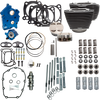 Bolt-on kit, With updated fins, No case machining required, Forged pistons, Made in the USA, Includes oil pump/cam plate, pushrods, tappets, tappet cuffs, 550 camshaft, valve springs, Oil Pump/Cam Plate:, Precision machined from billet aluminum, Passage plugs removable for servicing, Independent scavenge sections for flywheel cavity and camchest, Debris screens in both scavenge pickups, Magnet in camchest to help to stop debris from entering oil pump, 44% flow increase on supply side and 58% flow increase on scavenge side, Pressure relief valve is adjustable with unit installed in engine, Pushrods:, Quickee pushrods, Tappets:, Hand assembled to exacting tolerances, Reduced valve train noise from start up to shut down, Close tolerances for low leak down rates, Tappet Cuffs:, Hard anodized black coating, Billet aluminum construction, Tappet stability in high lift and high rpm sitiuations