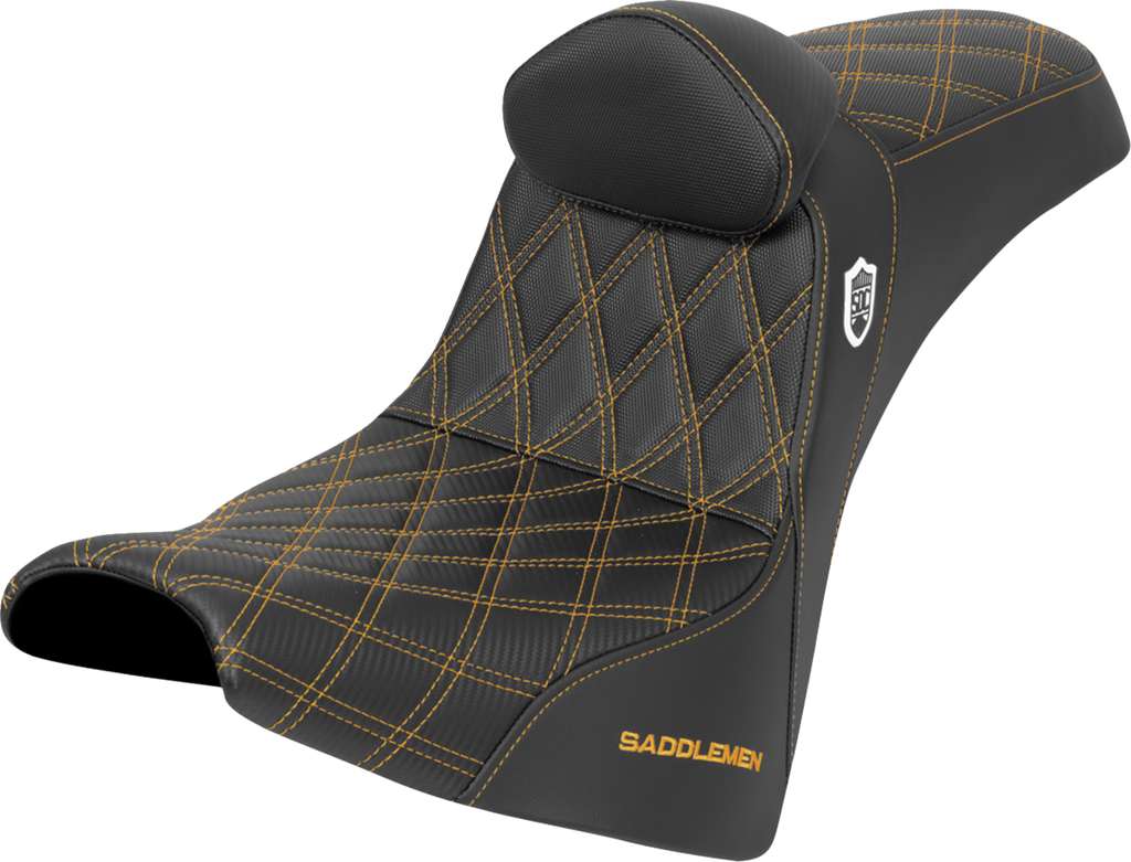 SADDLEMEN Pro Series SDC Performance Seat with Backrest for FXBB/FXST 2018-2025 – Gold Stitch, Gripper Material, and Lumbar Support