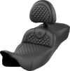 SADDLEMEN Roadsofa* Extended Reach Seat - Dragon Scale Stitch - Black Stitch - w/ Backrest - FLH/FLT '08-'24 808-07B-209B0