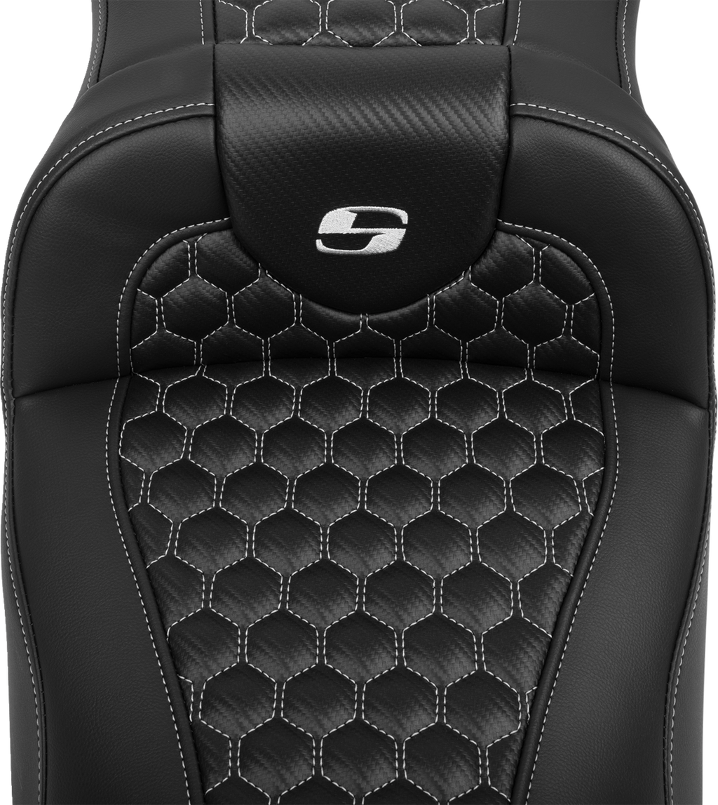 SADDLEMEN Roadsofa* Extended Reach Seat - with Backrest - Honeycomb - Silver Stitch - FLTR/FLHX '23-'24 823-07-190B5