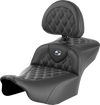 SADDLEMEN Roadsofa* Extended Reach Seat - with Backrest - Lattice Stitch - Silver Stitch - FLTR/FLHX '23-'24 823-07-184B5